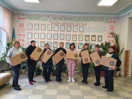 Ноутбуки передано за сприяння Фундації Олени Зеленської у межах ініціативи Глобальної бізнес-коаліції для освіти (GBC-Education) та проєкту «Цифровий актив для України» компанії HP та Microsoft.