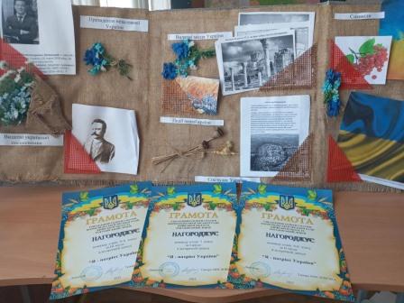 Вікторина « З Україною в серці»: 1 місце- 8 клас (17 б.), 2 місце- 9-А та 11 класи( по 15 б.), 3 місце-7 клас (13б.).